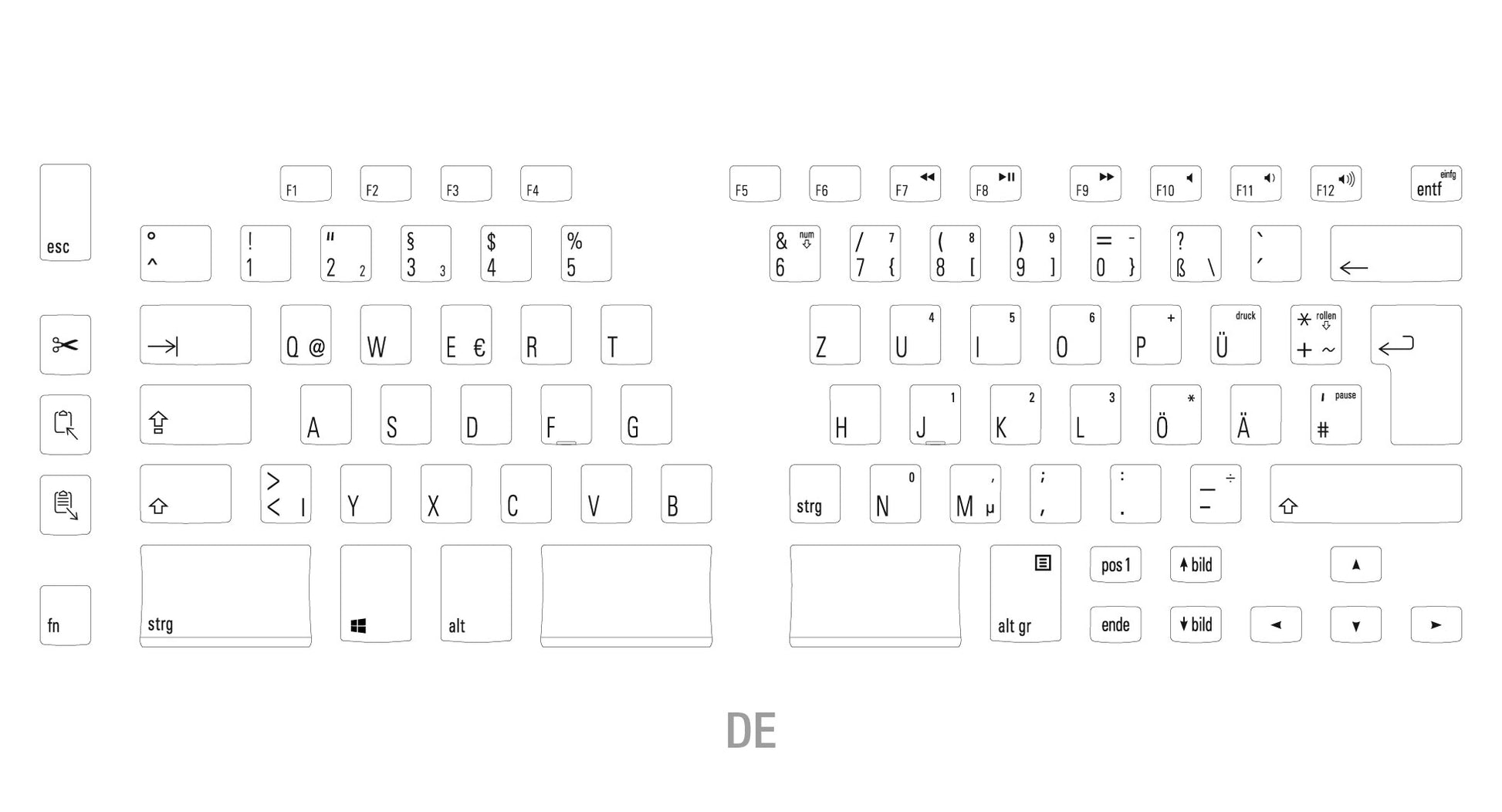 We’ve arranged the navigation keys in their traditional pattern, but we laid them out horizontally, and then positioned them along the bottom row, more like a laptop keyboard.