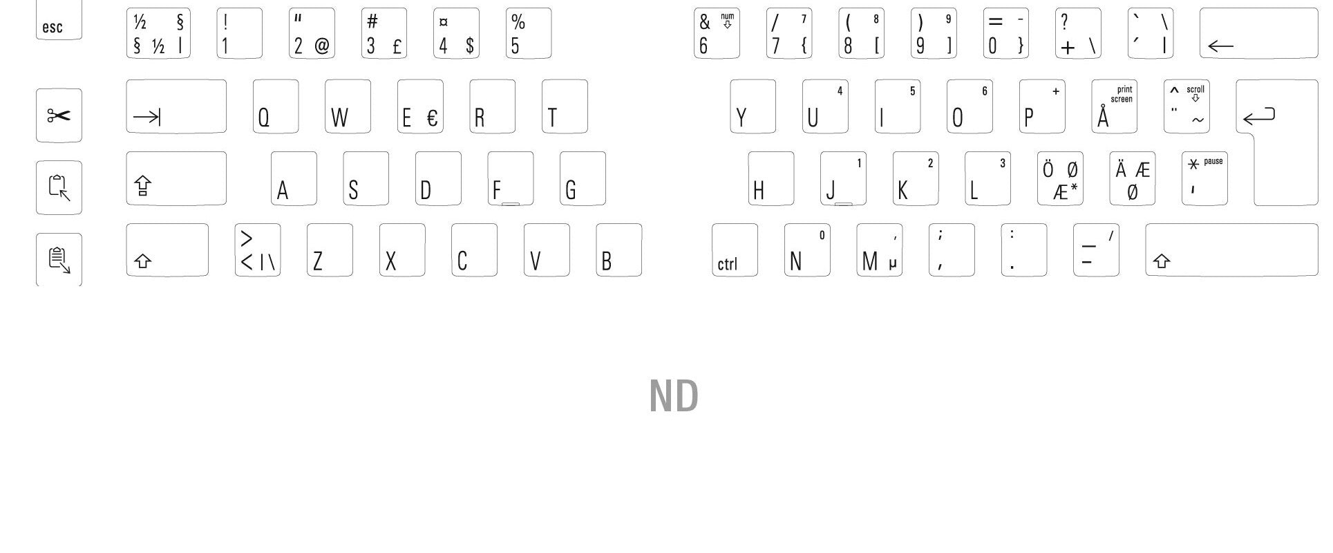 We’ve arranged the navigation keys in their traditional pattern, but we laid them out horizontally, and then positioned them along the bottom row, more like a laptop keyboard.